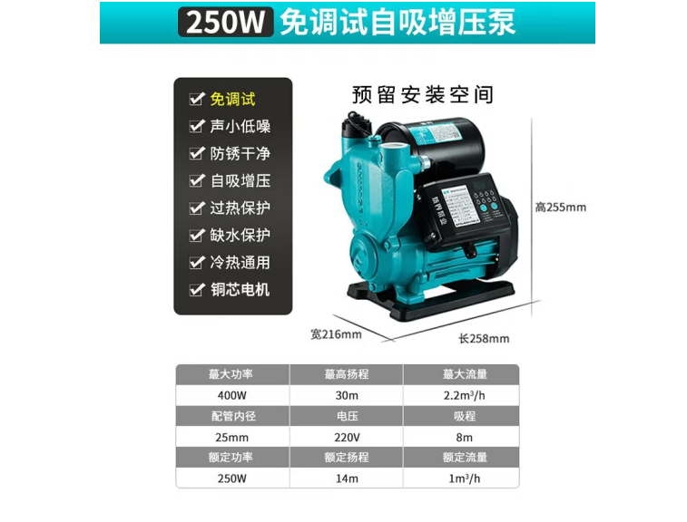 新界增壓泵家用智能全自動(dòng)自來水加壓自吸泵全屋增壓水泵太陽能增壓泵 250W免調(diào)試增壓泵 自營