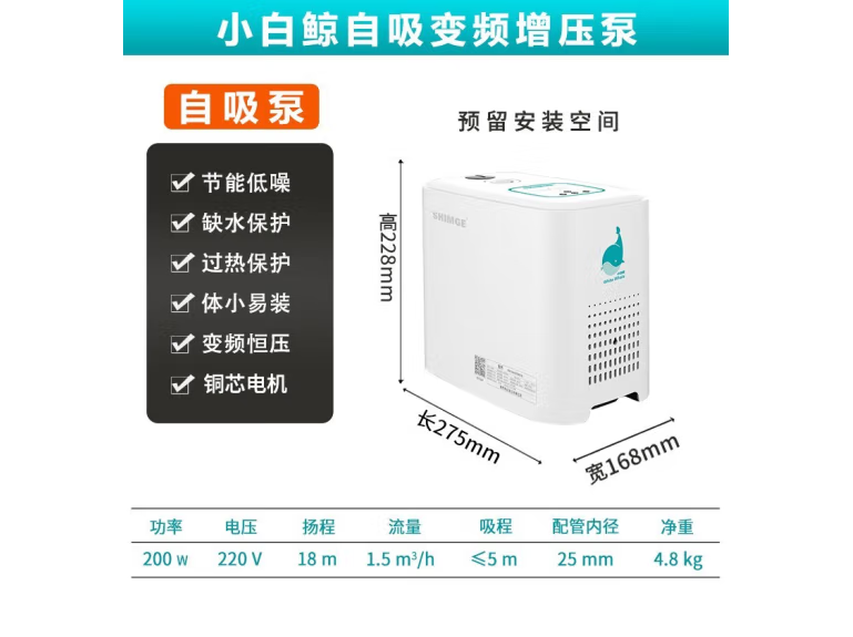 新界小白鯨增壓泵家用變頻泵自來(lái)水管道加壓全自動(dòng)自吸泵恒壓泵 自吸變頻增壓泵 自營(yíng)