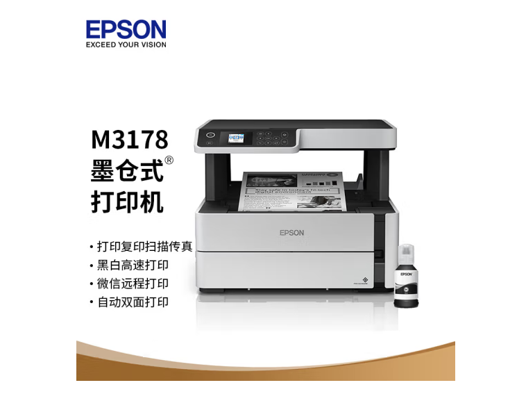愛(ài)普生(EPSON)墨倉(cāng)式M3178黑白多功能傳真一體機(jī) 全新設(shè)計(jì)內(nèi)置墨倉(cāng)家用商用打印無(wú)憂 自營(yíng)