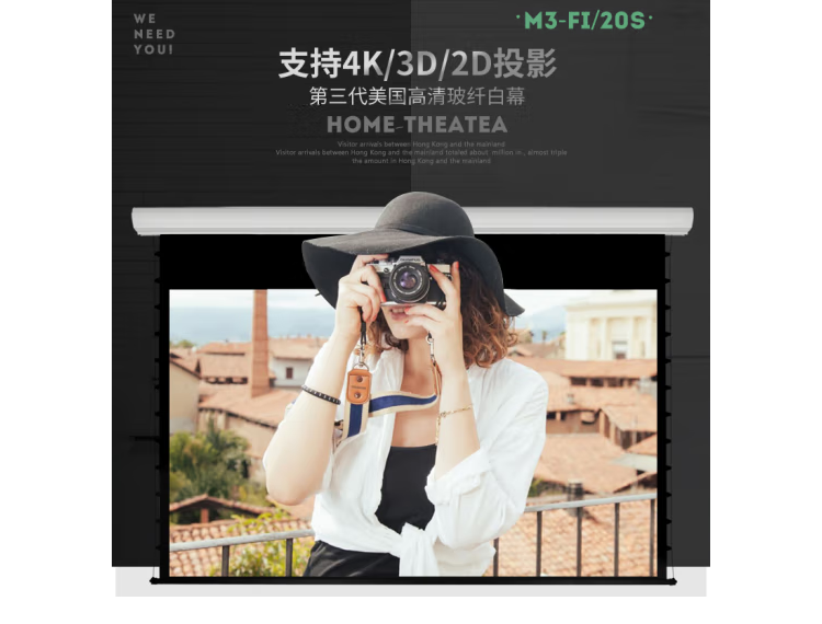 經(jīng)科(Jing Ke) M3-FI/20s高清玻纖電動拉繩幕投影儀幕布 白色外殼 96 英寸16:9 自營