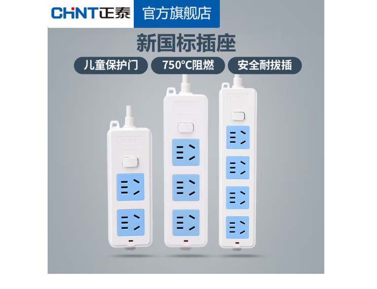 正泰插座插排拖線板插線板帶線多孔多功能宿舍用排插Sunrise 2T-1140 四位五孔總控2.8m 自營