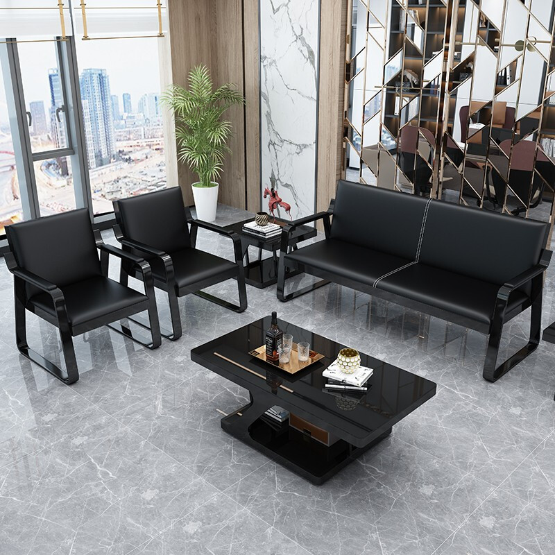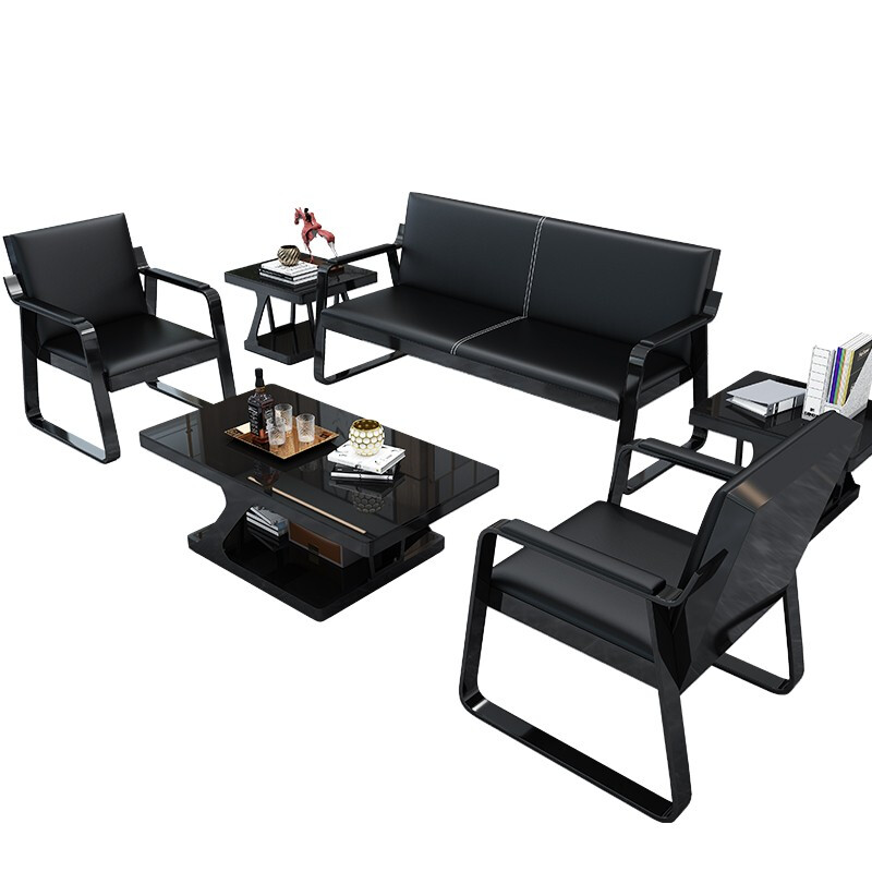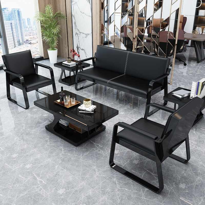 九駿道辦公沙發(fā)簡約現(xiàn)代辦公室沙發(fā)茶幾組合商務(wù)接待會客1+3+1 頭層牛皮沙發(fā)