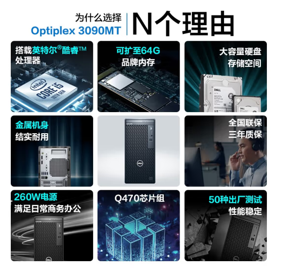 ¥6114.00戴爾(DELL) 臺式機Optiplex 3090MT商用辦公電腦主機 3090標(biāo)配i5-10505/8G/256G/1T