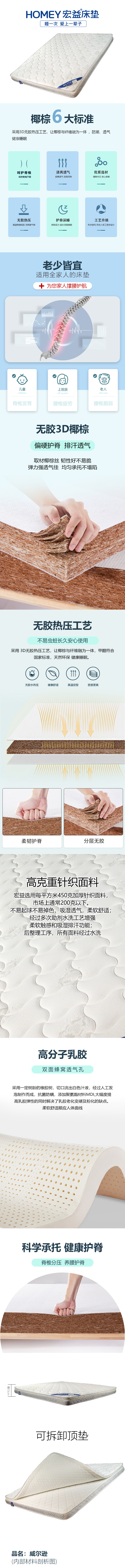 宏益床墊 威爾遜 13cm高純度乳膠 3D椰棕 高密度海綿 YKK拉鏈可拆卸乳膠頂墊 1800*2000 自營