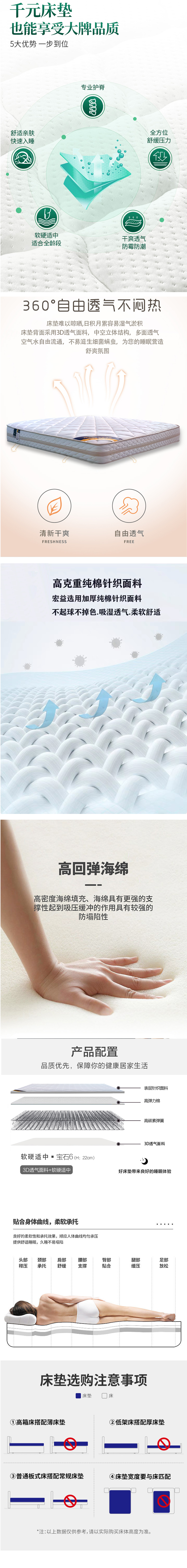 宏益床墊 寶石6 22cm 軟硬適中 高碳素彈簧 純棉針織面料 3D透氣網(wǎng) 20 17 14 1200*2000 自營(yíng)
