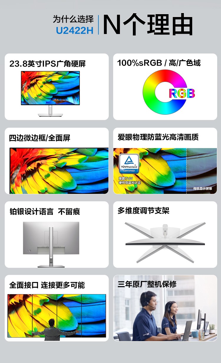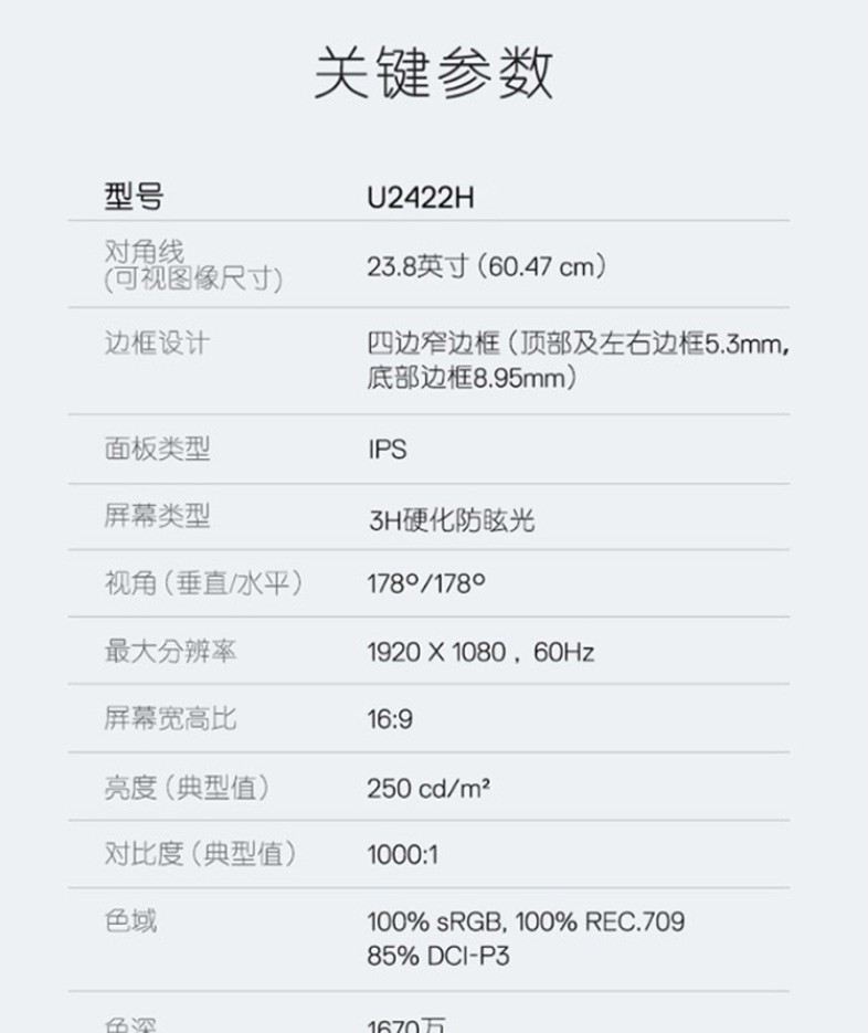 戴爾(DELL) U2422H 23.8英寸顯示器(HDMI+DP接口)U2419升級(jí)